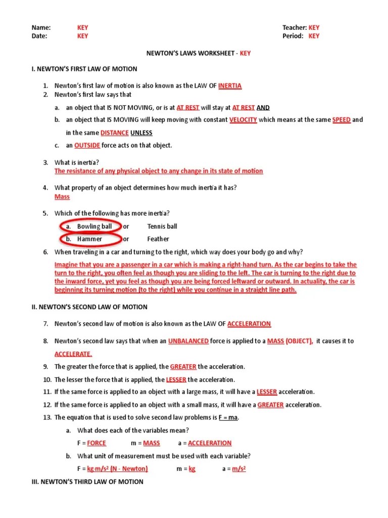 Newton's Laws Worksheet Answers / Describe The Motion Of The Race Car Shown In The Graphic To The Right Assume The Car Is Moving Forward Is It Speeding Up Or Slowing Down 2 Find Course Hero :. In 1687, sir isaac newton published his groundbreaking book, which described the three laws of motion and redefined the way the world looked at physics and science. While rarely done, you can be fined for not responding to the census. Responding to us census questionnaires is required by federal law. The following projects are awesome illustrations of newton's second law. Newton's laws of motion are fun when learning with these free printable worksheets that include a word search, crossword, and a coloring page.